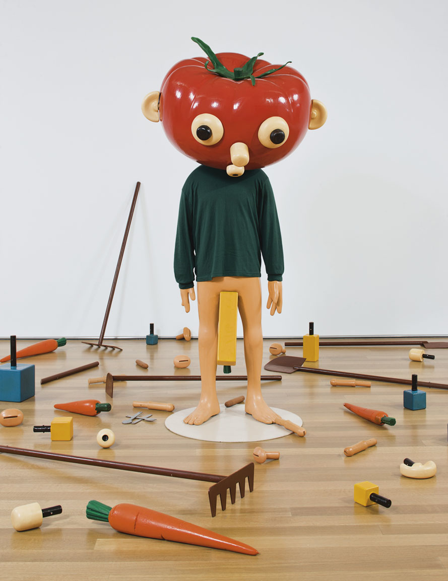Tomato Head (Green), 1994 (metales, plásticos y otros elementos, 218 cm altura donde la camiseta es verde) era una de las tres únicas variantes que existían de la pieza: las otras dos están en la colección de Dimitris Daskalopolous, Athens (Burgundy: burdeos) y en la Ydessa Hendeles Art Foundation, Toronto (Black: negro).