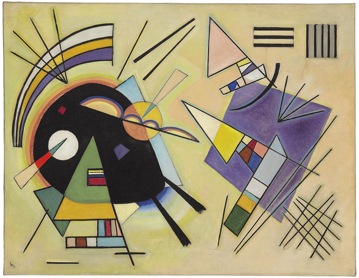 Schwarz und Violett (O/L, 77,8 x 100 cm), realizado en abril de 1923. Obra típica de su mano con composición en dos partes y líneas y colores que subrayan la relación, la estimación era de 4,5 a 7,5 millones de dólares. Al final, como decía, el remate llegó a los 12.597.000 dólares (7.810.140 libras; 9.321.780 euros).