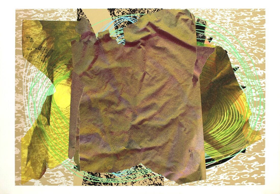 Silkscreen, collage and painted by the artist on Cromomat paper 300 grs