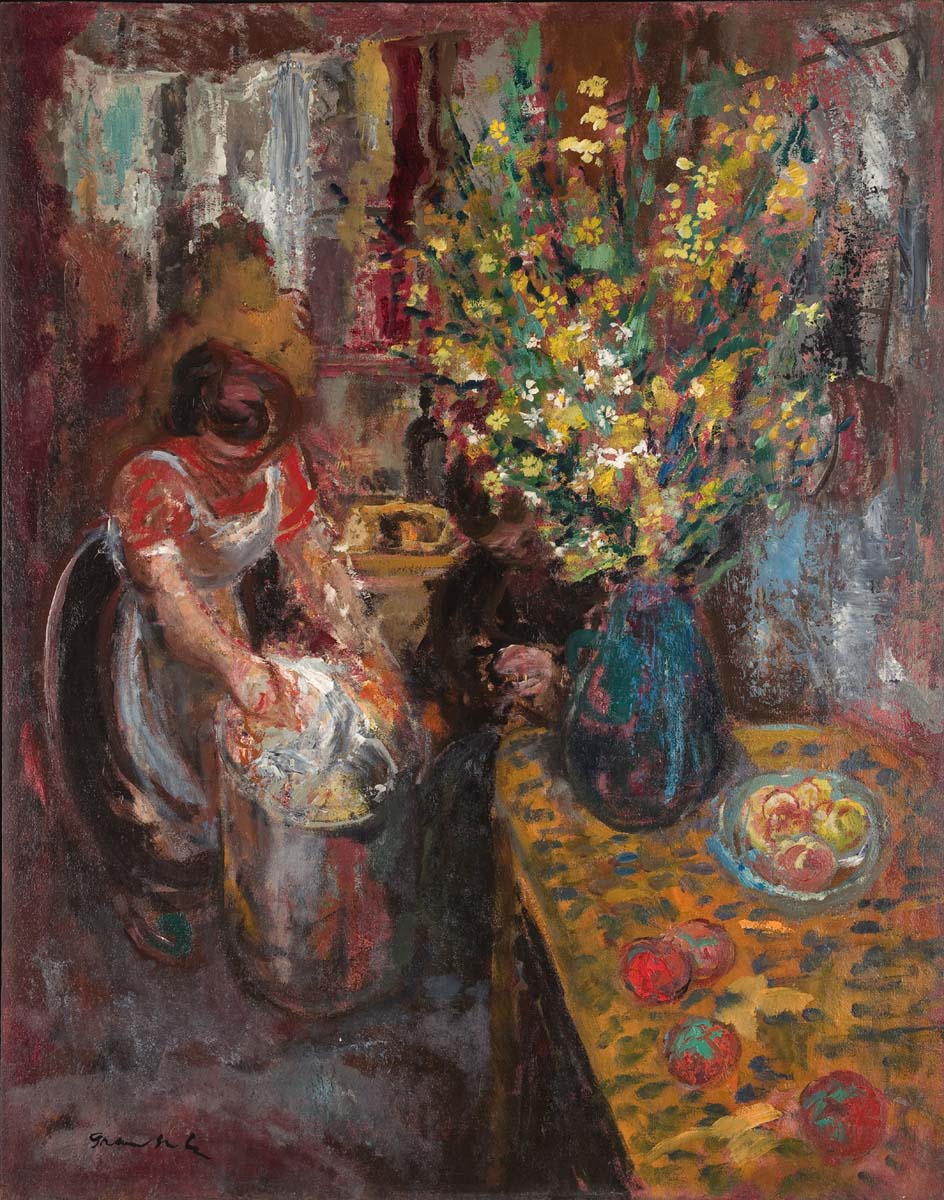 Tres piezas más modestas, de la escuela de París: de Carlos Nadal (1917-1998), un colorista y aéreo Colmar (O/L, 73 x 92 cm) por 17.000 euros; de Francisco Bores (1898-1972), Claveles en la mesa (O/L, 46 x 55 cm), fechado en un buen 1941, por apenas 15.000 euros; y de De Emilio Grau Sala, realizado hacia 1950, Bodegón de cocina parte desde los 30.000 euros en AnsorenaEmilio Grau Sala (1911-1975), realizado en un relativamente temprano 1950, Bodegón de cocina (O/L, 92 x 73 cm), que parte desde los 30.000 euros, en un estilo cercano a su estimado Bonnard, pero con una pincelada menos certera, claro.