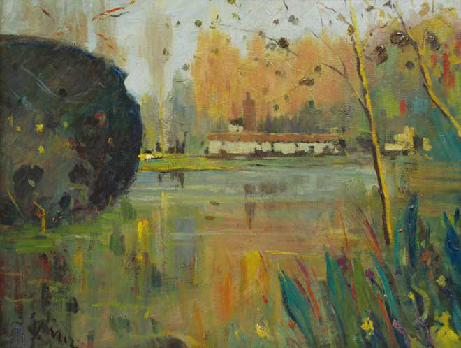 Ese mismo día, 14 de abril, la sala catalana Subarna ofrece una Vista al lago, de Joaquín Mir, saldrá a pujas por 90.000 euros en SubarnaVista al lago (O/L, 62 x 80 cm) del catalán Joaquín Mir (1873-1940) por unos altos 90.000 euros. Y, como colofón, un par de piezas de Arcadi Más i Fontdevila (1852-1934): Dama en el balcón (O/L, 44 x 31 cm) por 9.000 euros -que salió a pujas en Balcli’s, en octubre de 2009 por 7.000 euros- y Can Fals, 1901, un gouache sobre papel de ciertas dimensiones ya (66 x 56 cm) por uno altos 15.000 euros; no será fácil encontrar comprador para este tipo de obras.